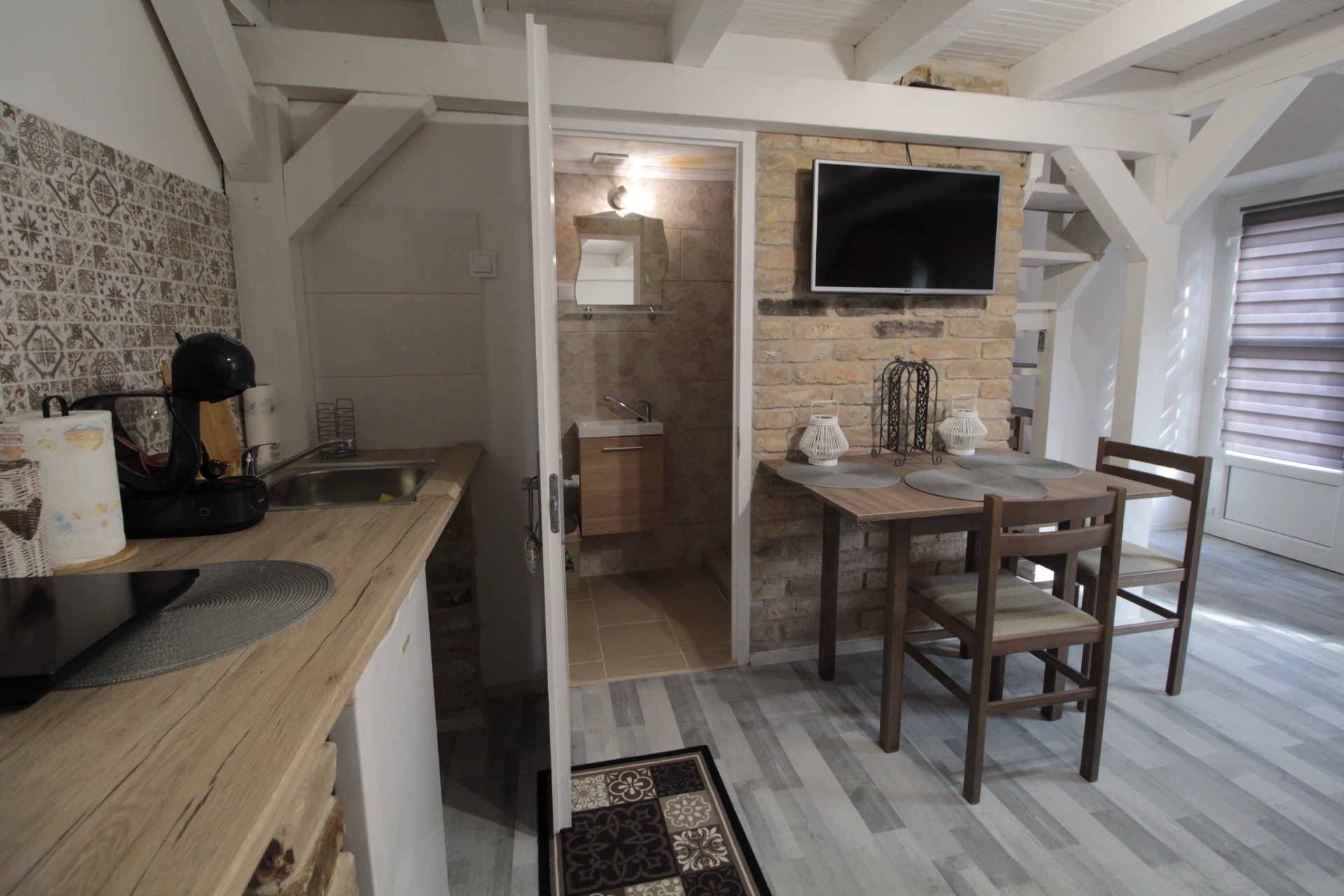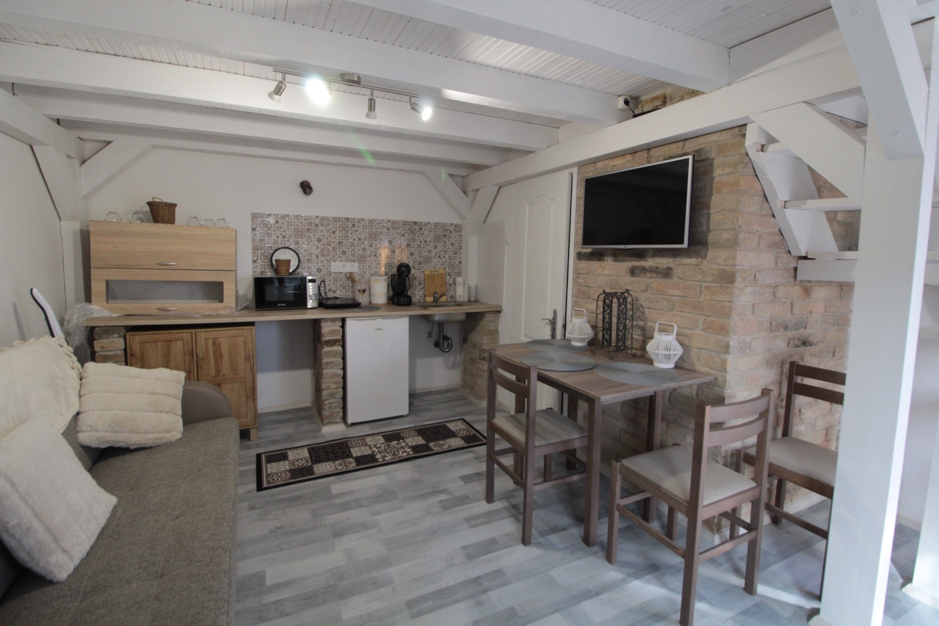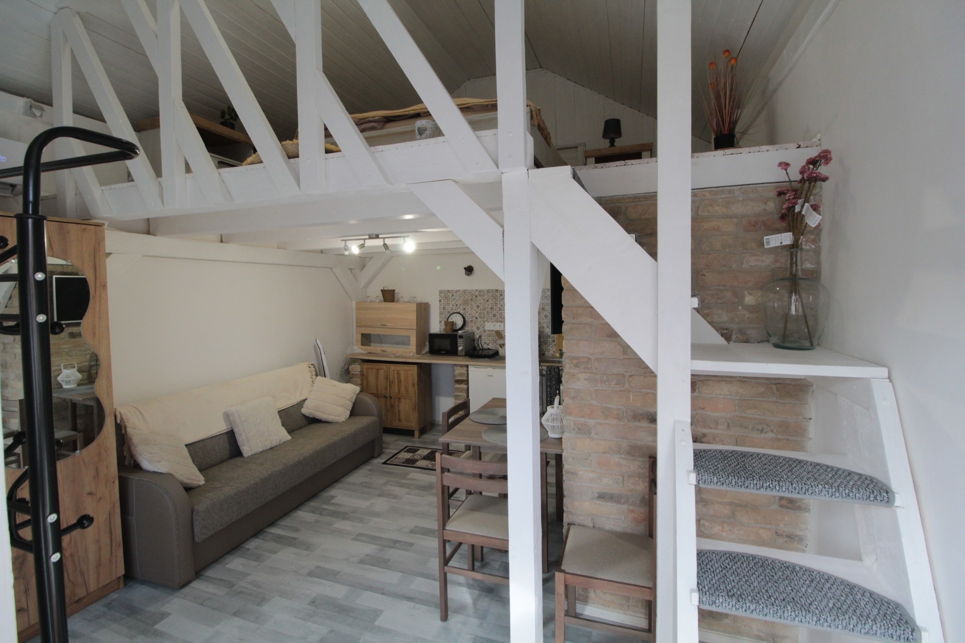 A galériás kialakítás különlegessé és praktikussá teszi a teret, így akár 2–4 fő kényelmes elhelyezésére is alkalmas.