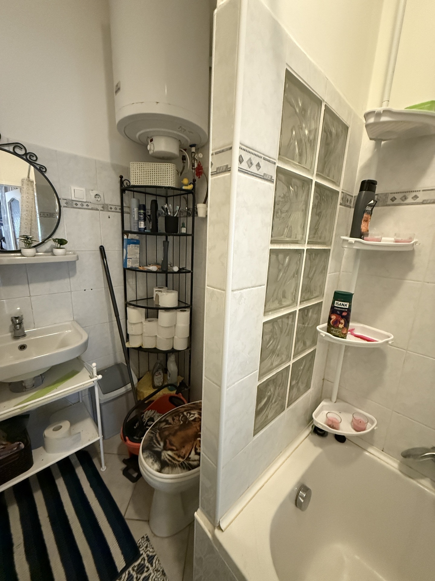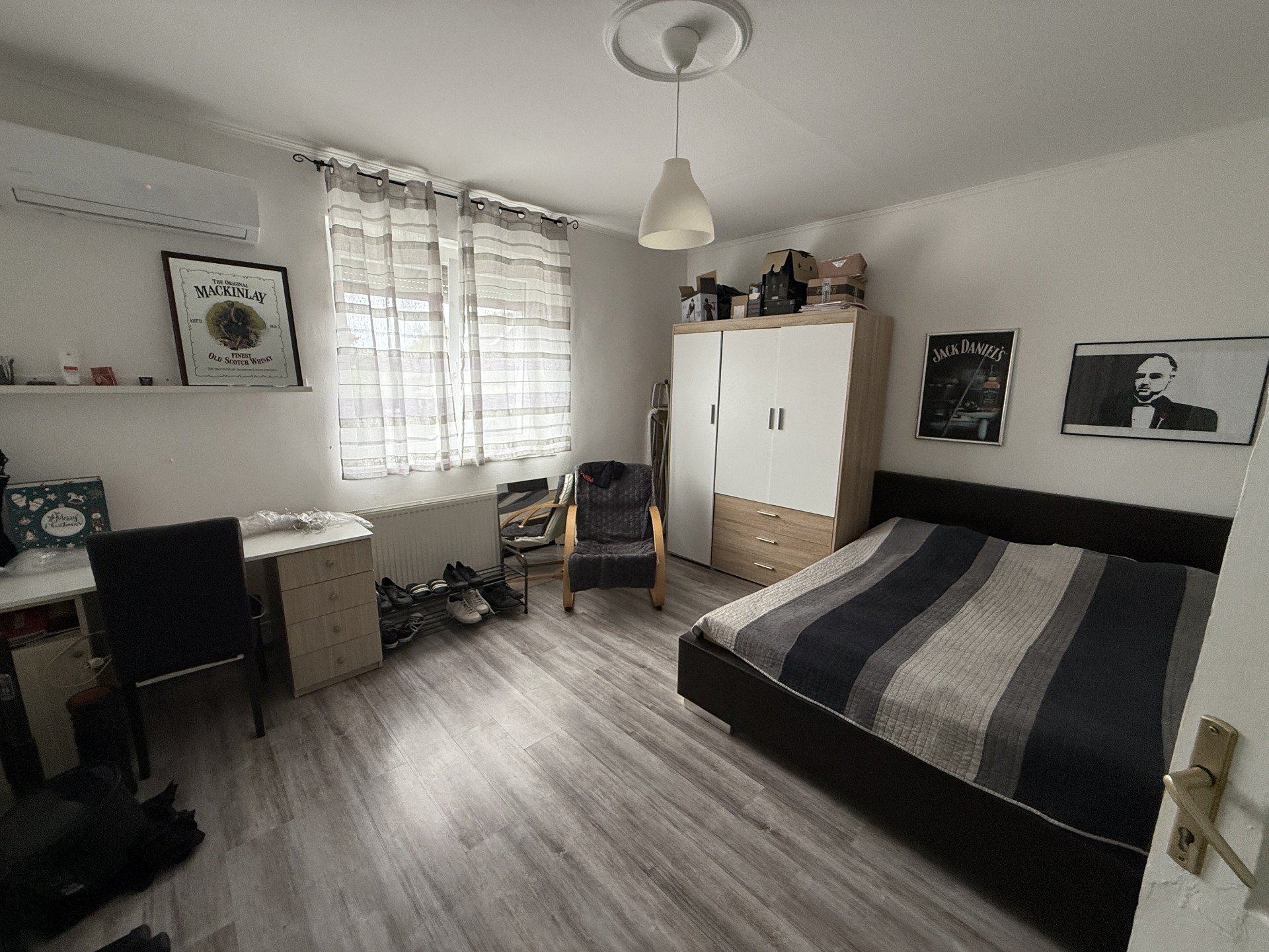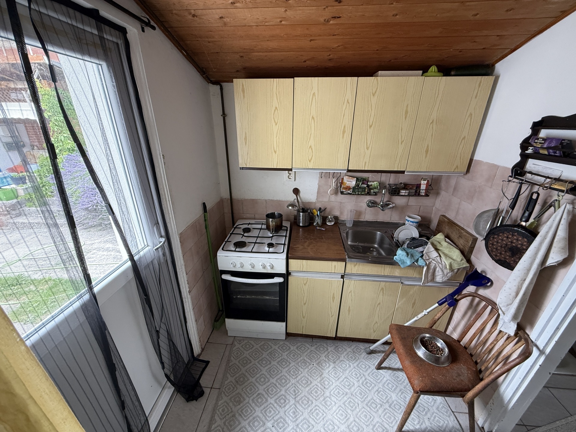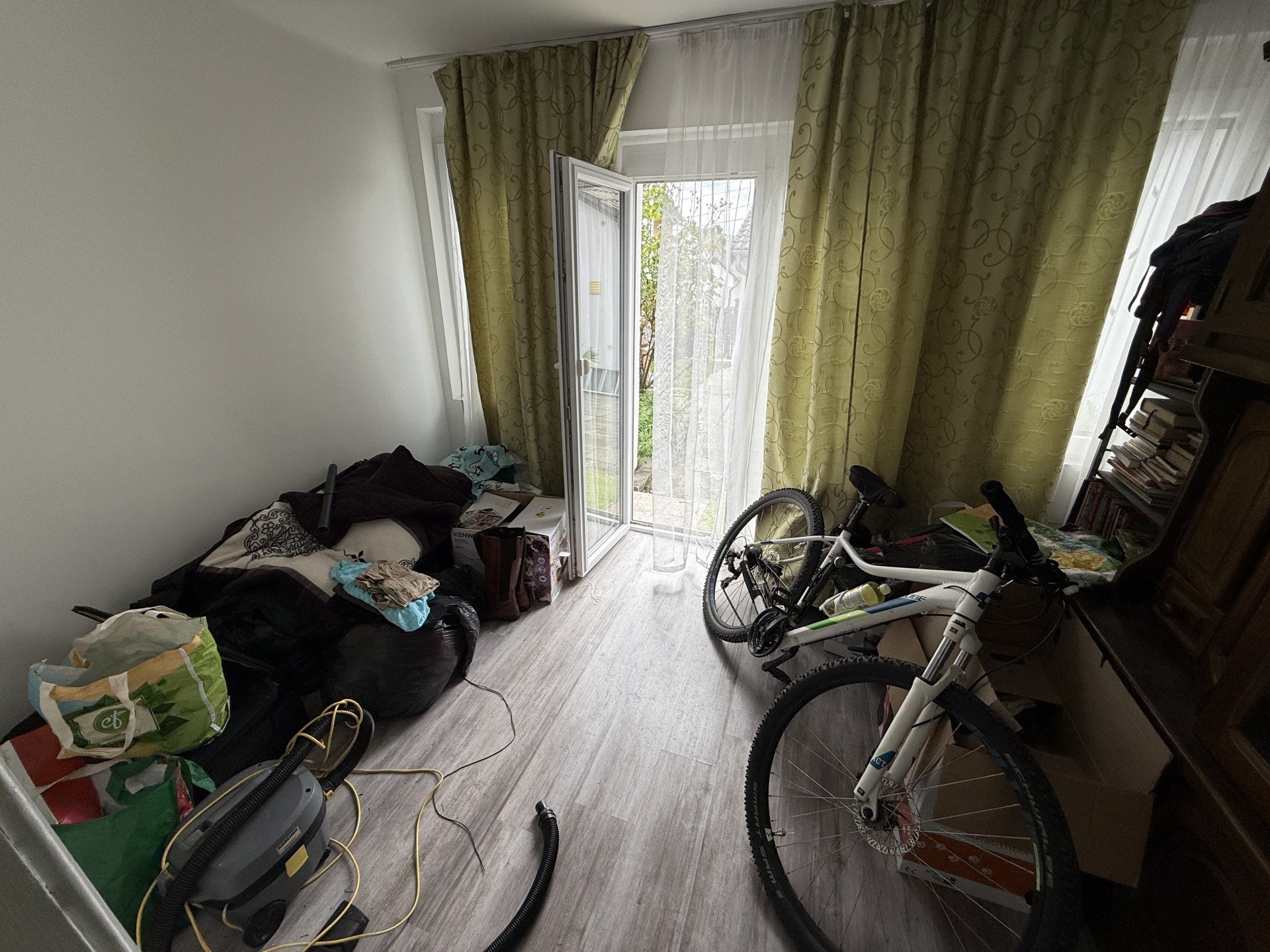 A kisebb, 40 m²-es ház külön bejárattal rendelkezik, saját fürdőszobával, konyhával és egy szobával. Fűtése parapetes gázkazánról történik, klíma és villanybojler szintén rendelkezésre áll.