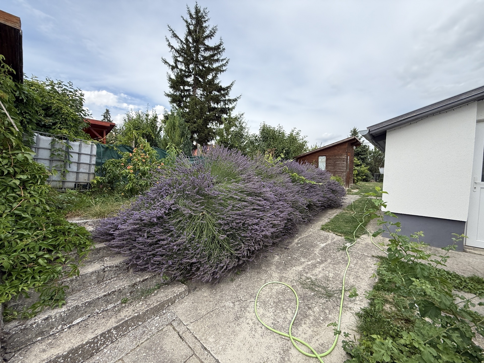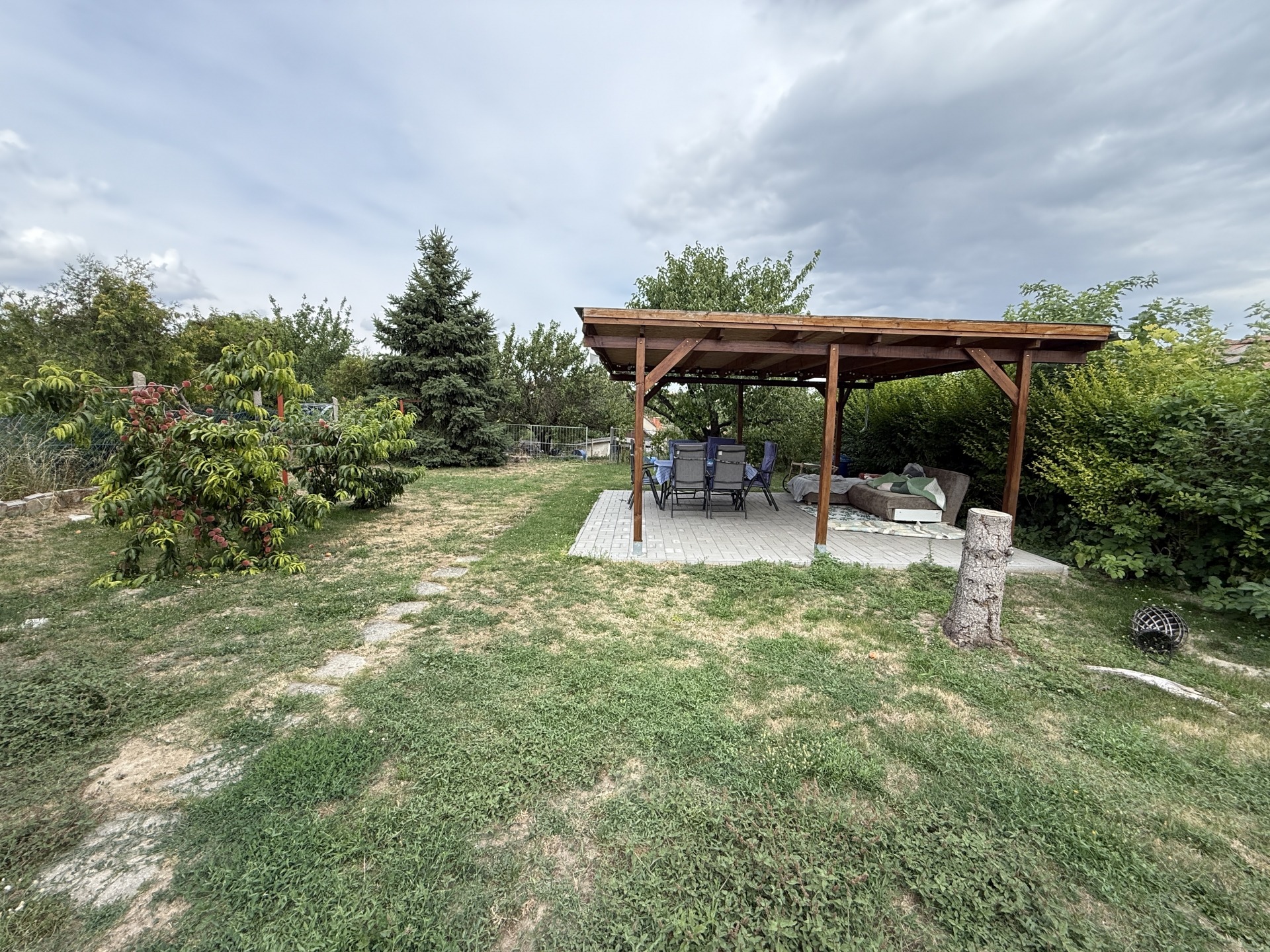 A gondosan karbantartott kertben gyümölcsfák – többek között alma, meggy, sárgabarack és őszibarack – biztosítják a friss termést, míg a veteményes és magaságyás a saját termesztés örömét kínálja.