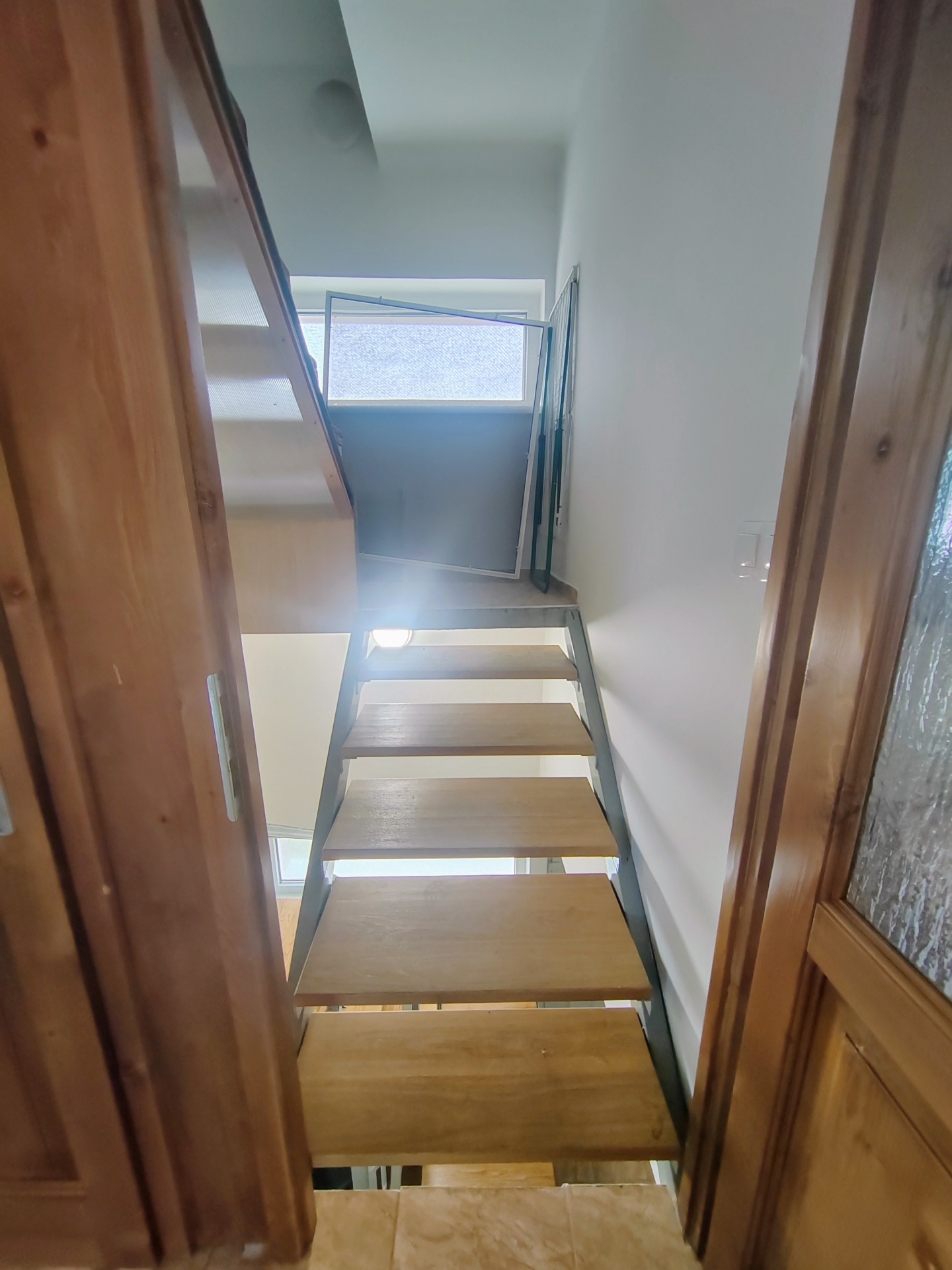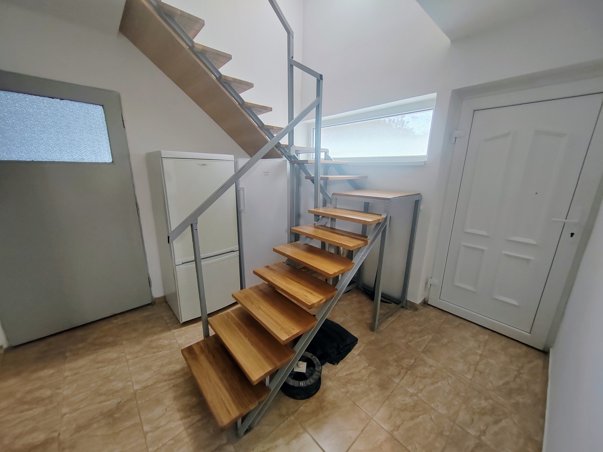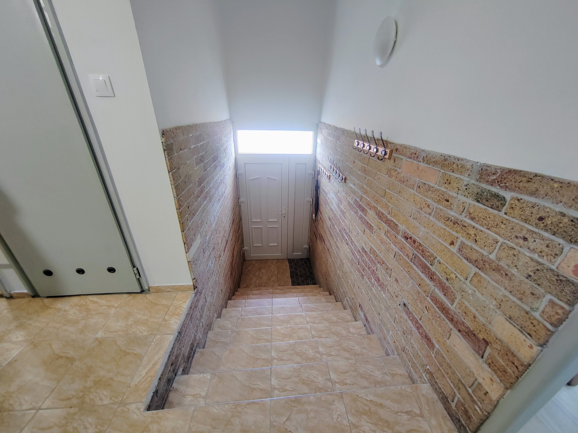 Az alsó szintet egy dupla fa ajtó különití el a felsőtől, mely igény szerint nyitható és zárható.