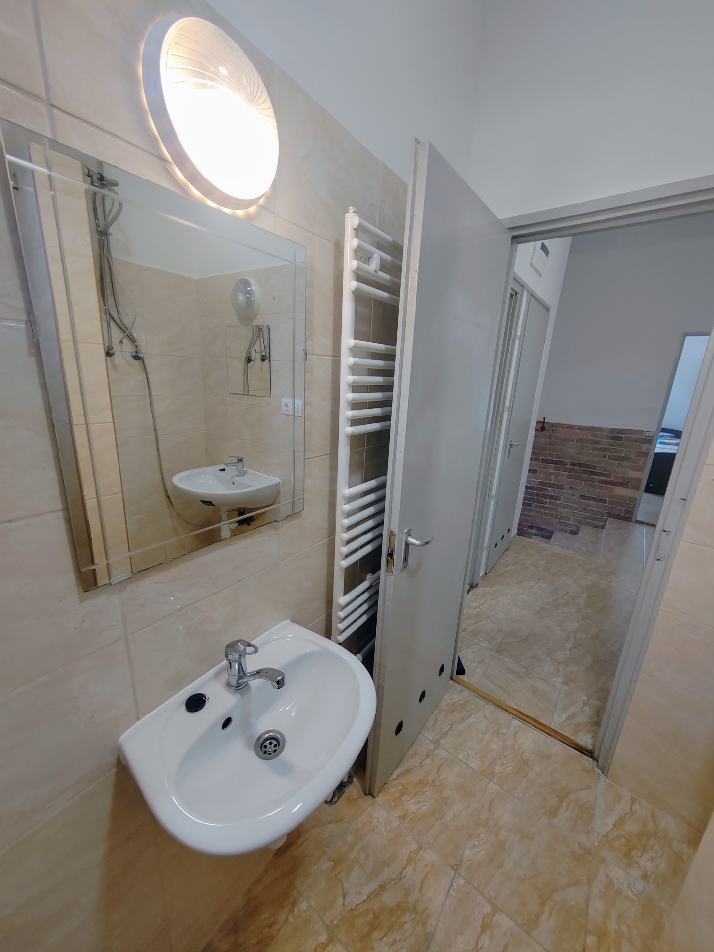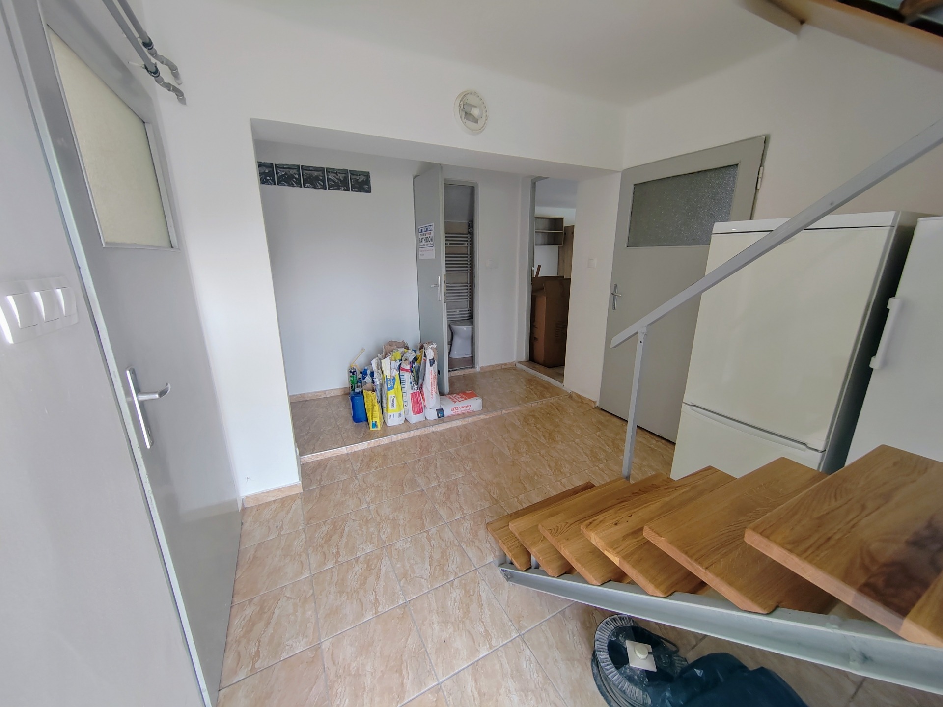 A lépcsőn leérkezve jutunk az előszobába , amelyből egy konyha , 2 szoba , 2 külön fürdő -wc-vel és