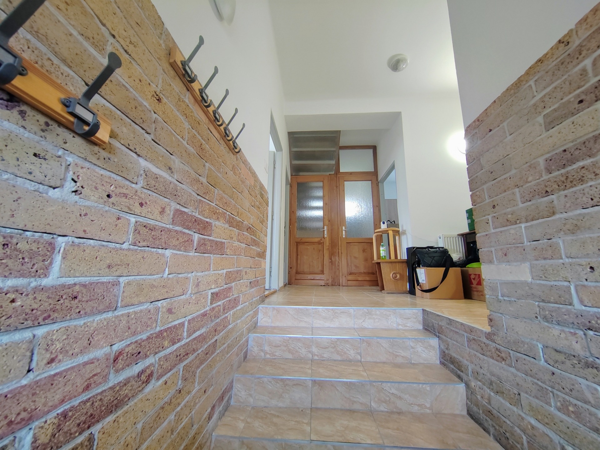 Lépcsőn feljutva az előszobába érkezünk , amelyből 3 tágas szoba nyílik valamint konyha ,kamra , fürdő, wc került kialakításra.