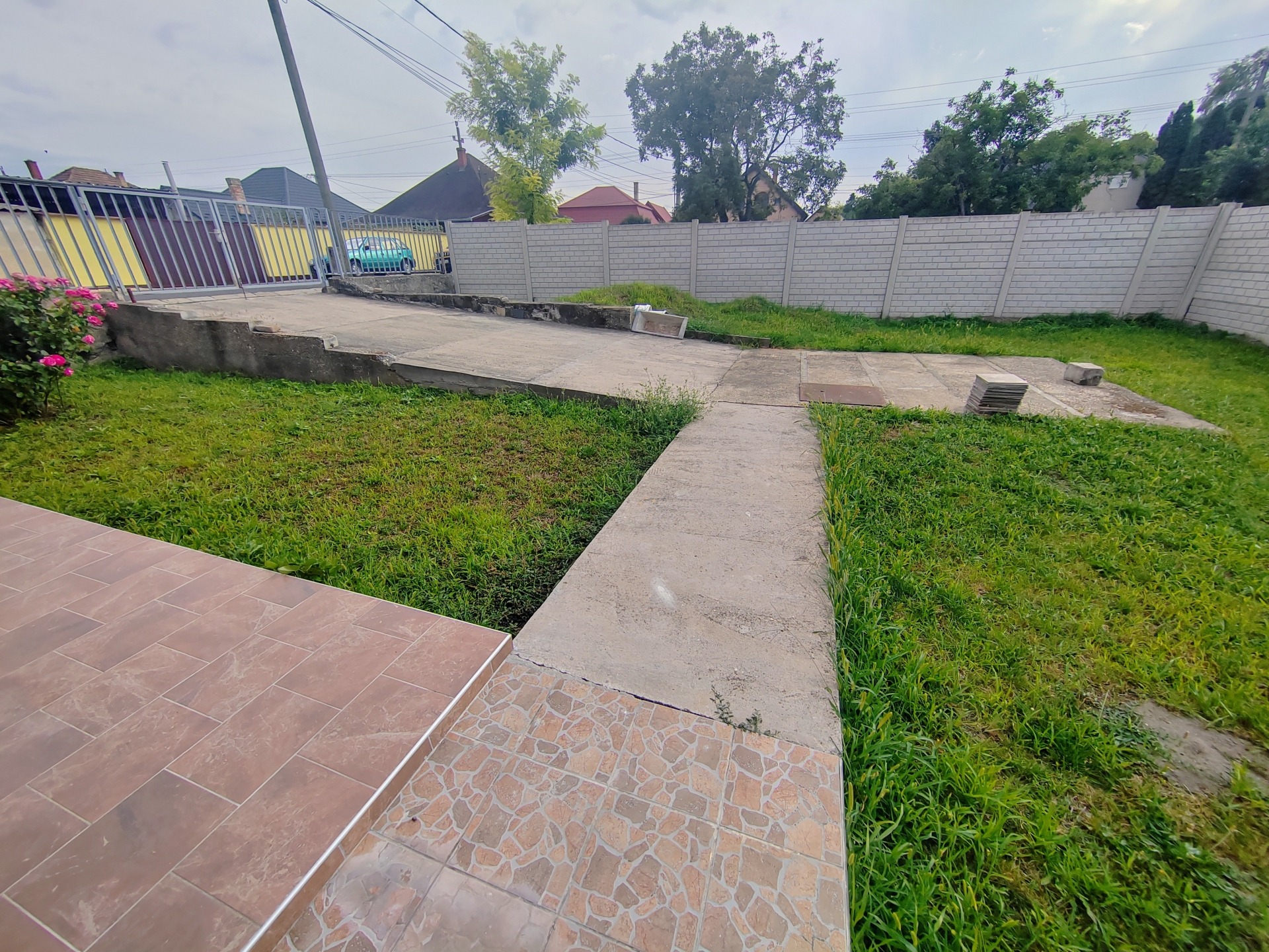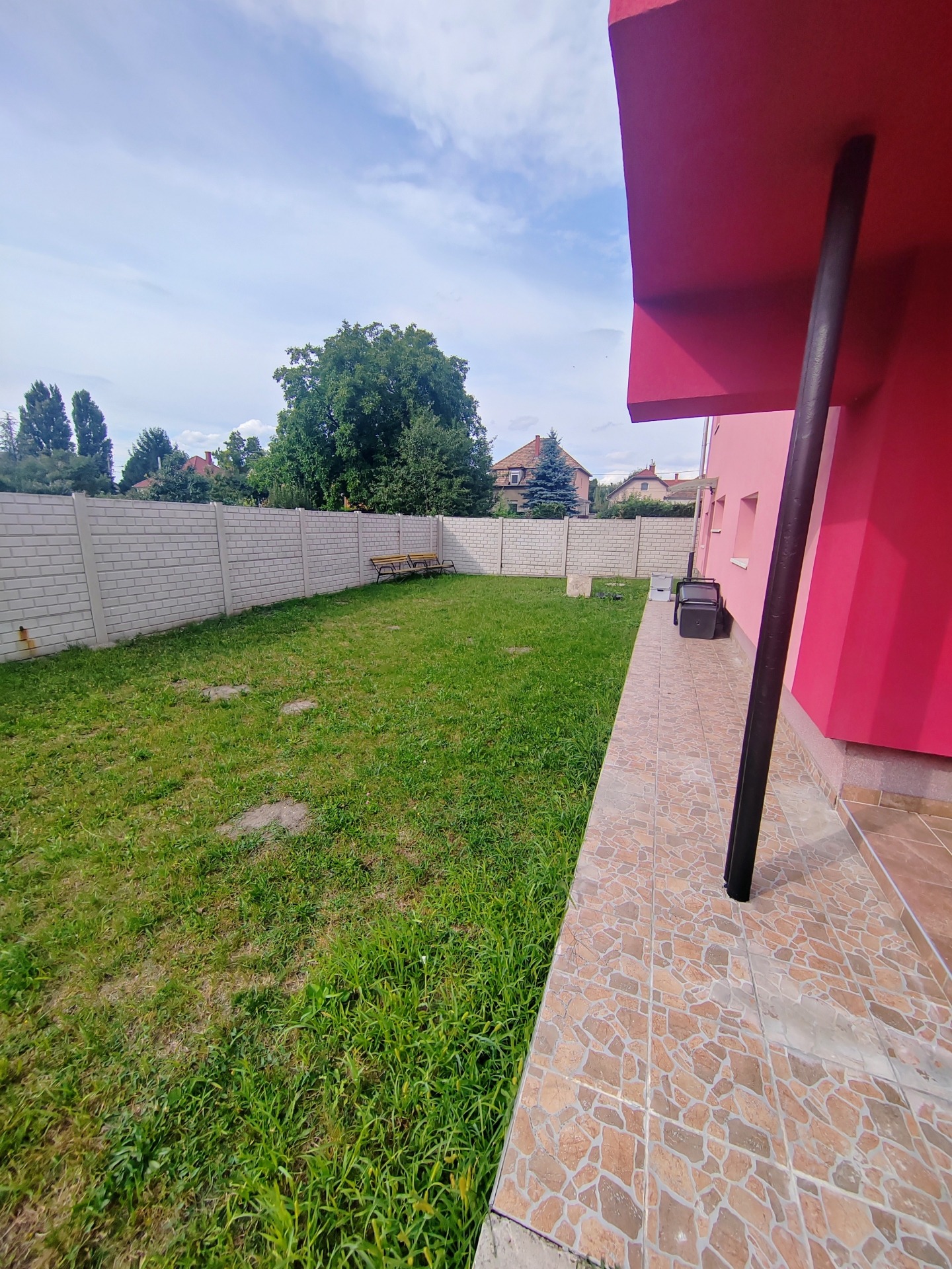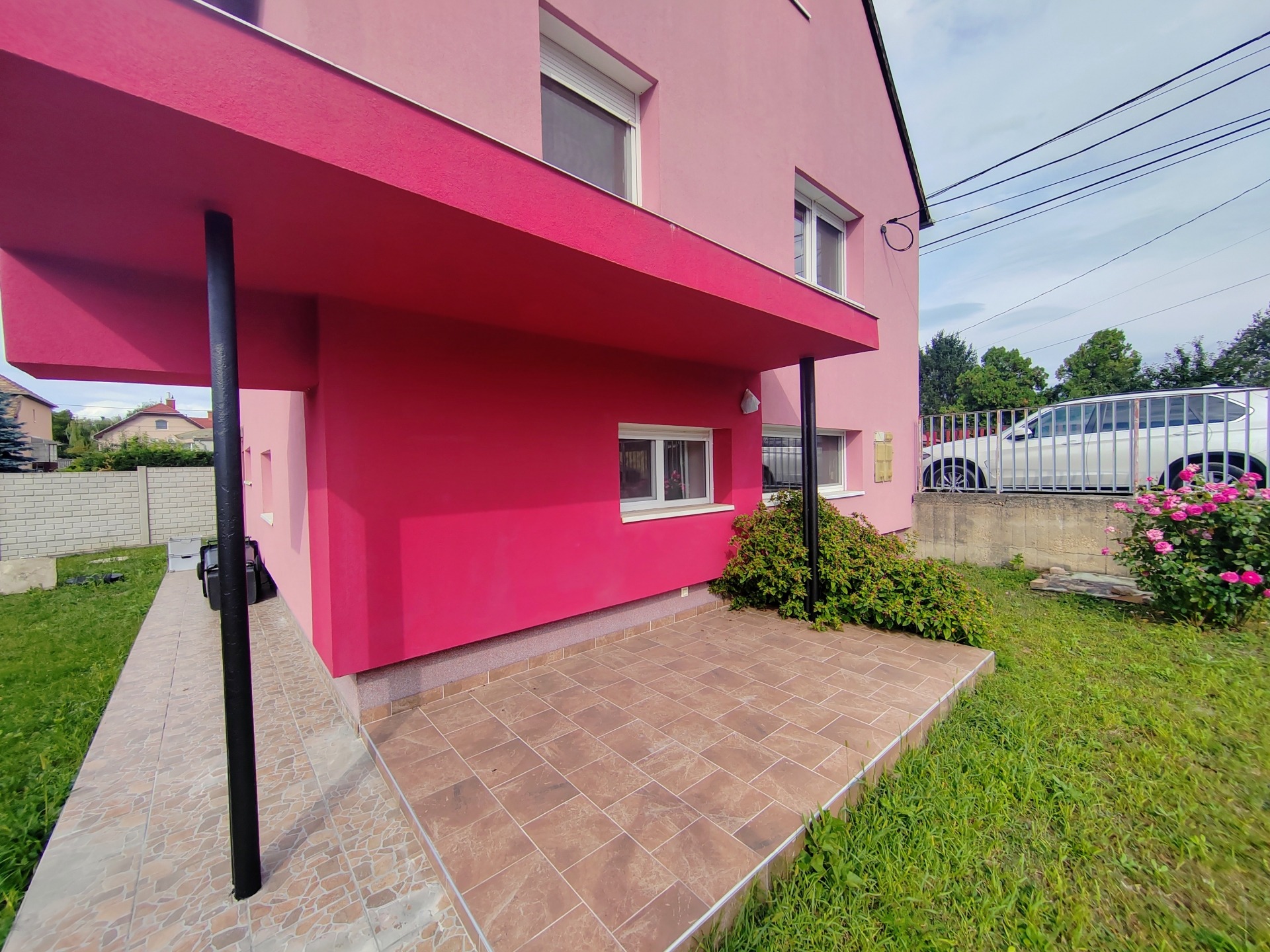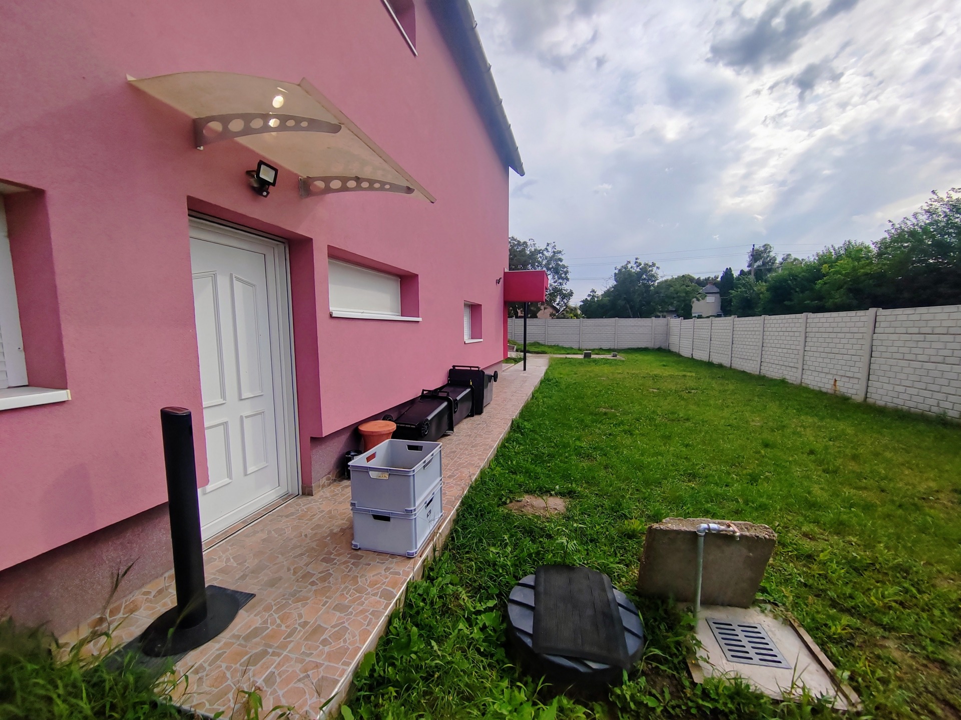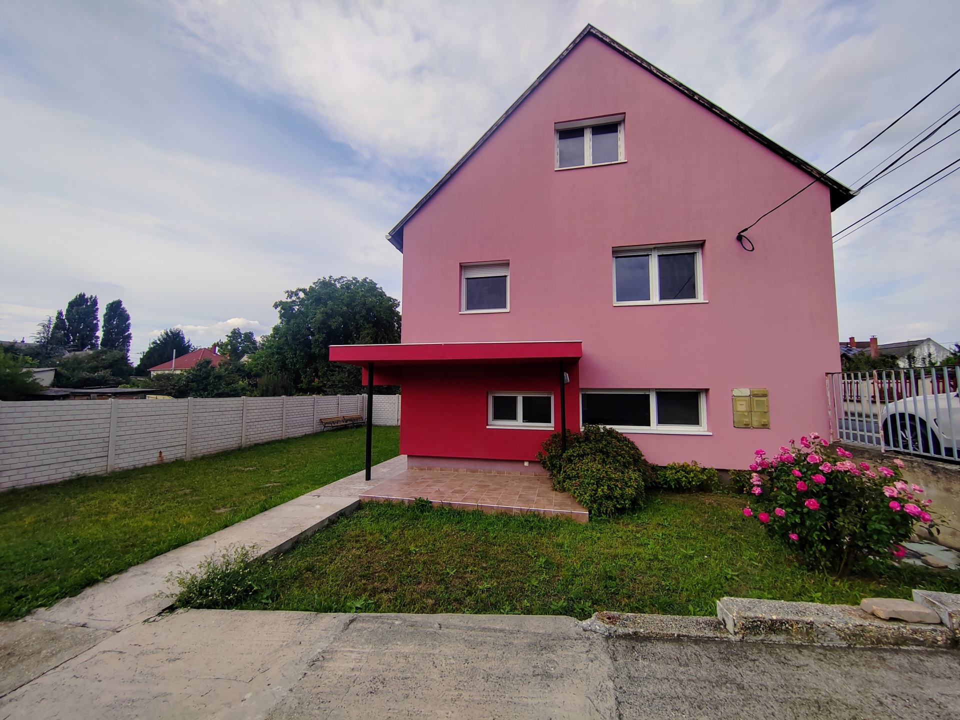 A ház közel 400 nm-es teljesen körbekerített telken helyezkedik el, amelyhez füvesített udvar tartozik valamint több autó számára parkolási lehetőség.