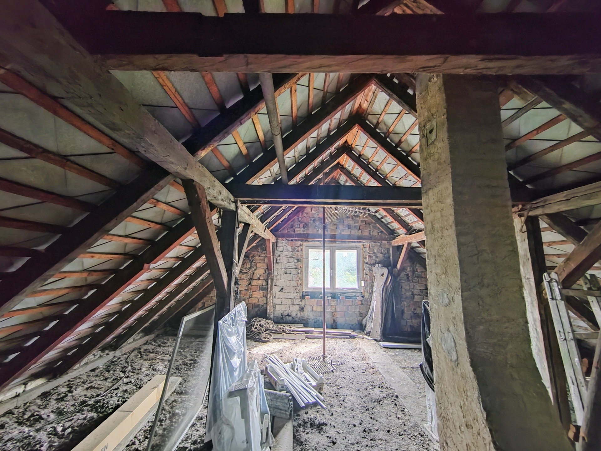 A nagy méretű tetőtér beépíthető, így a bővítés lehetősége adott , jelenleg 2 ablak elhelyezésre került.
