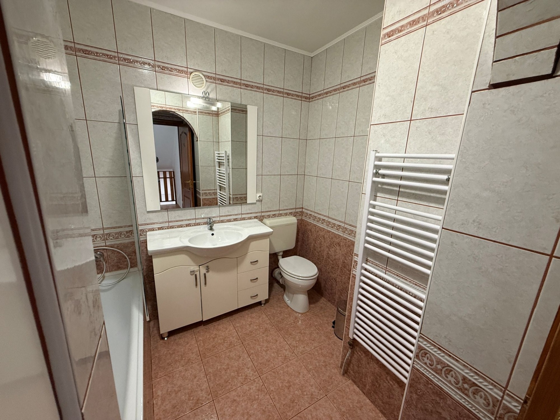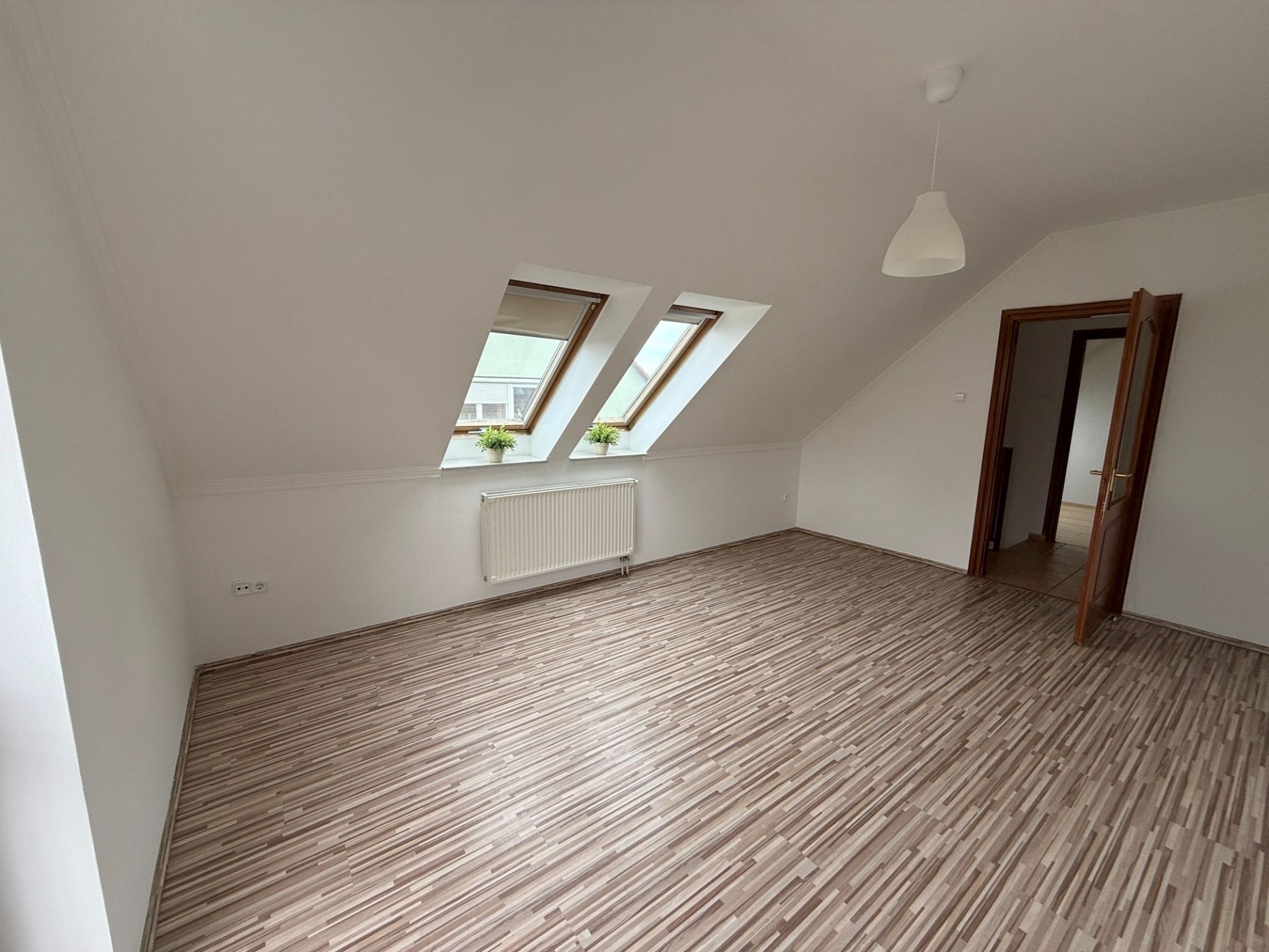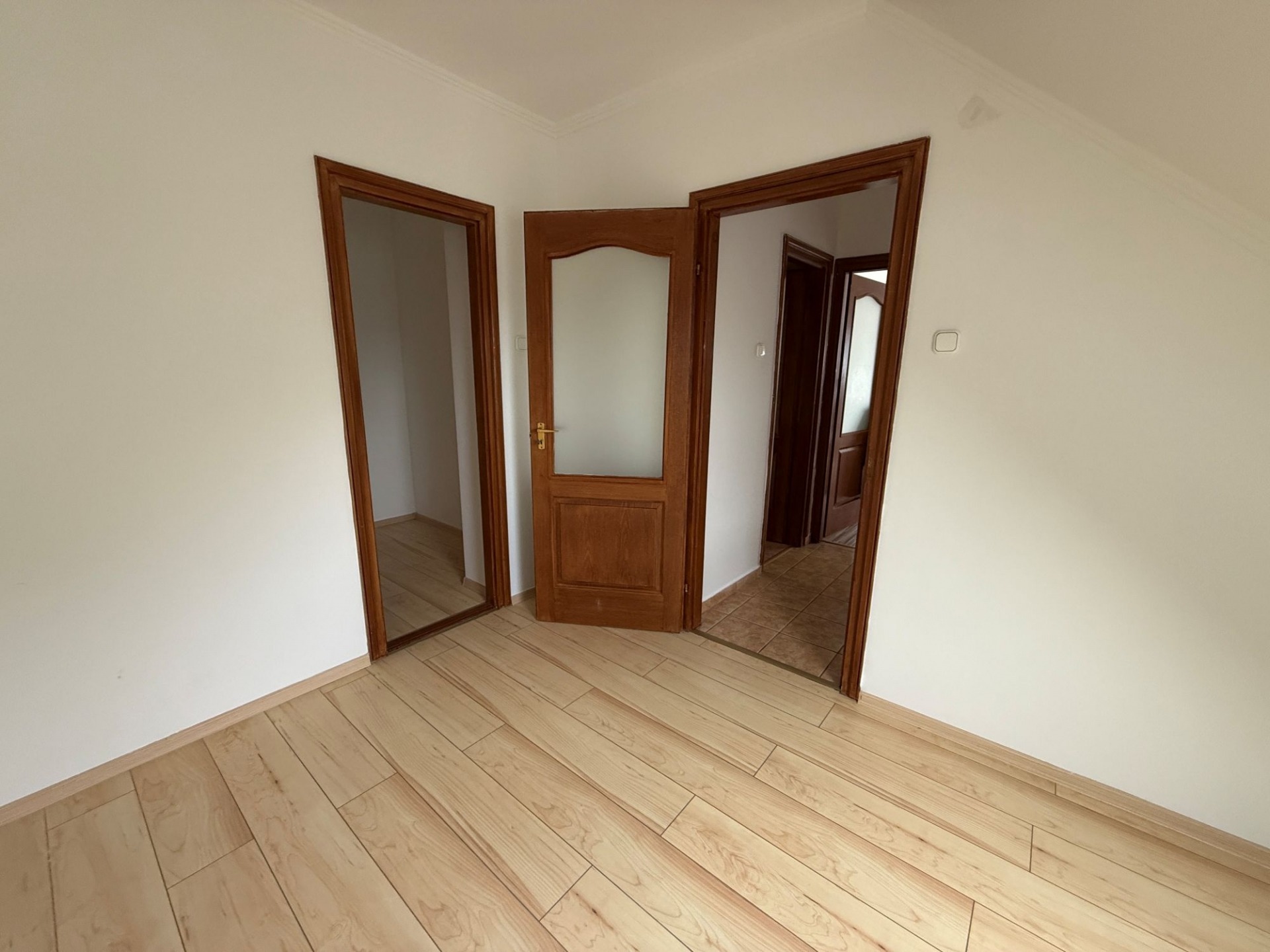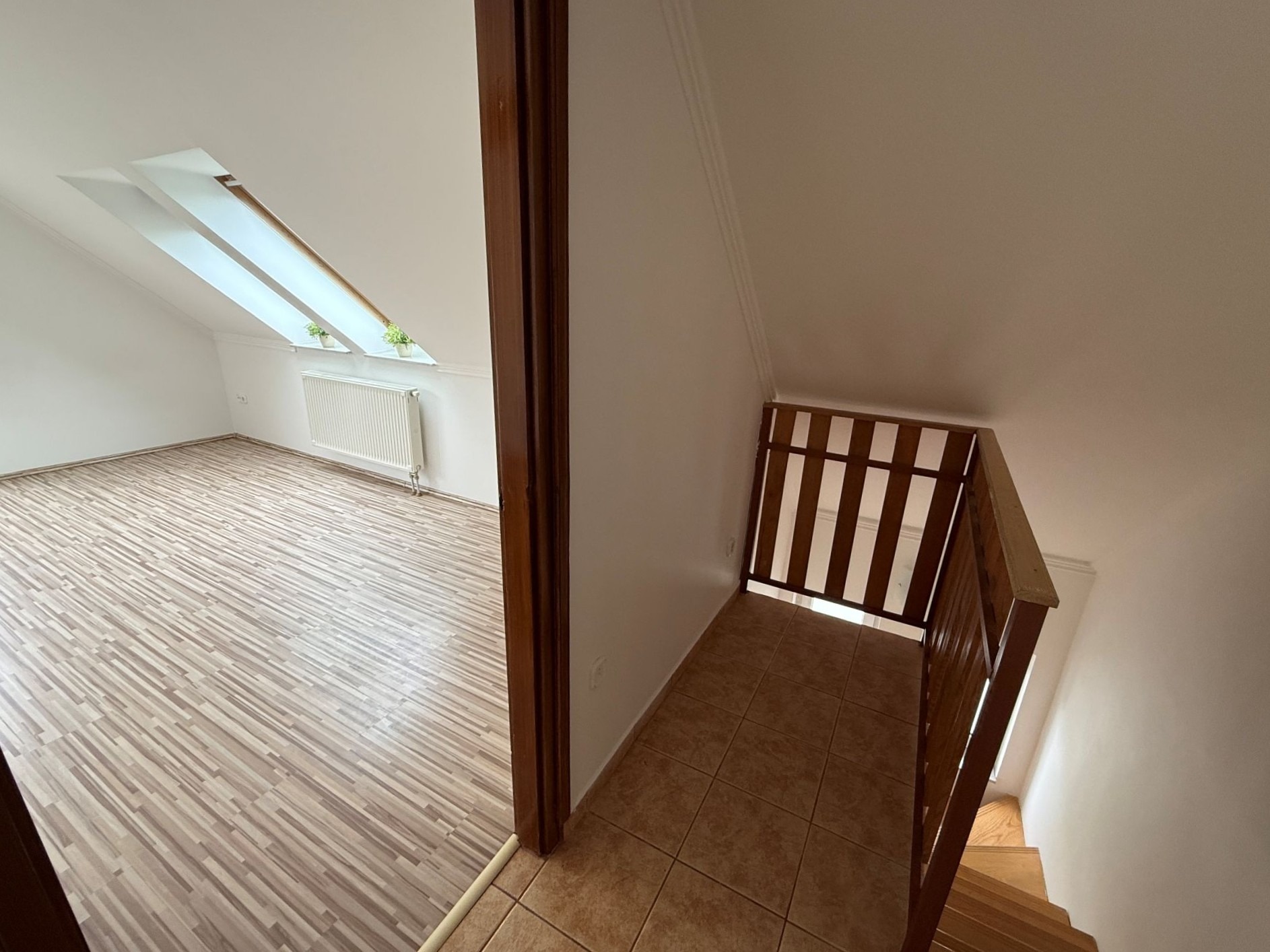 A felső szinten egy előtérből érhető el egy nagyobb szoba franciaerkéllyel, egy kisebb szoba gardróbbal, valamint egy nagy méretű, kádas fürdőszoba, amely kényelmes megoldást nyújt akár egy család számára is.
