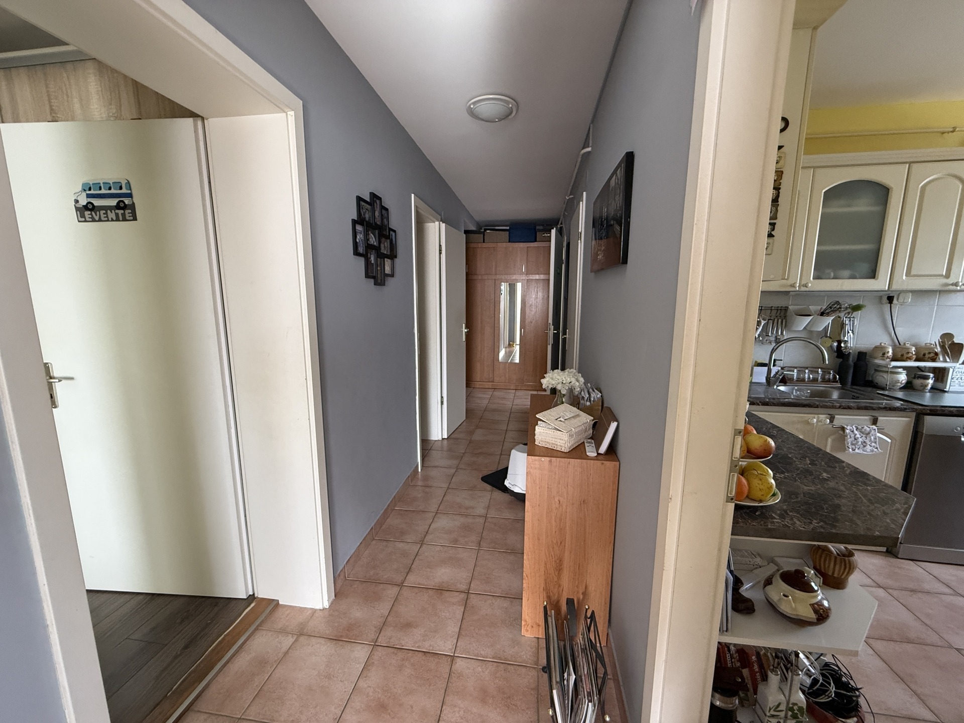 A lakás elrendezése kifejezetten élhető: minden helyiség külön nyílik, így a nappali és a két hálószoba jól elkülönül, mégis harmonikus egységet alkot. A tágas konyha-étkező a mellette található kamrával a mindennapok praktikusságát szolgálja, míg a külön fürdő és WC tovább növeli a komfortérzetet.