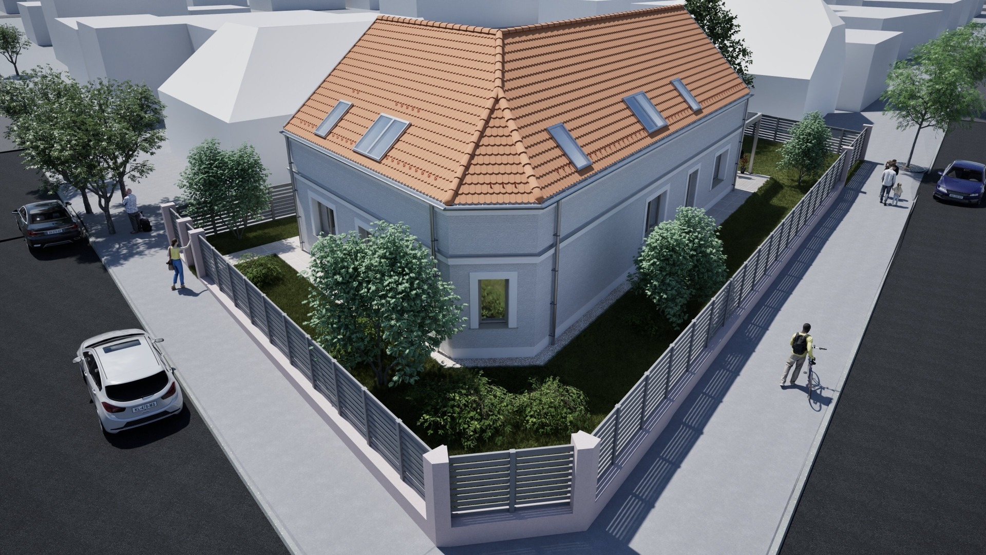- lakótér 110nm: az épület földszintjén amerikai konyhás nappali-étkező, fürdőszoba és egy hálószoba található. A felső szinten két hálószoba és egy fürdőszoba kerül kialakításra.